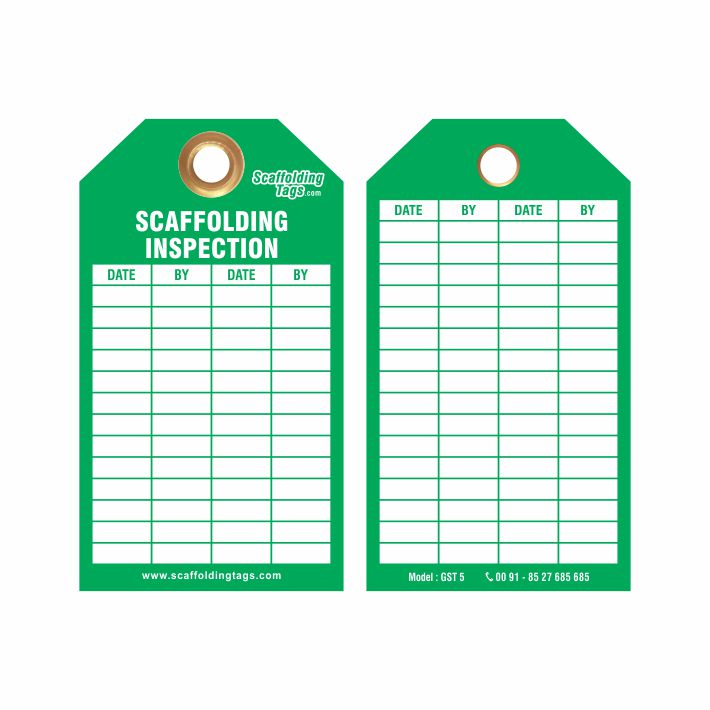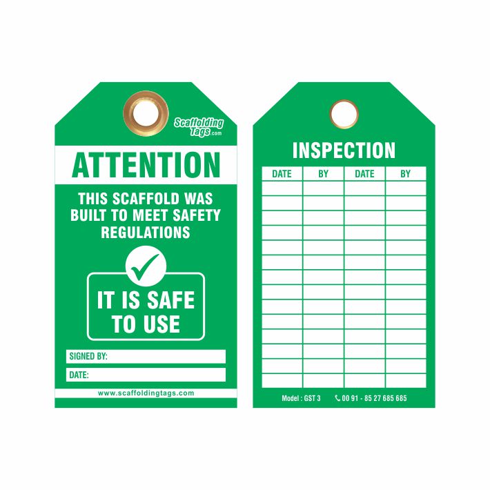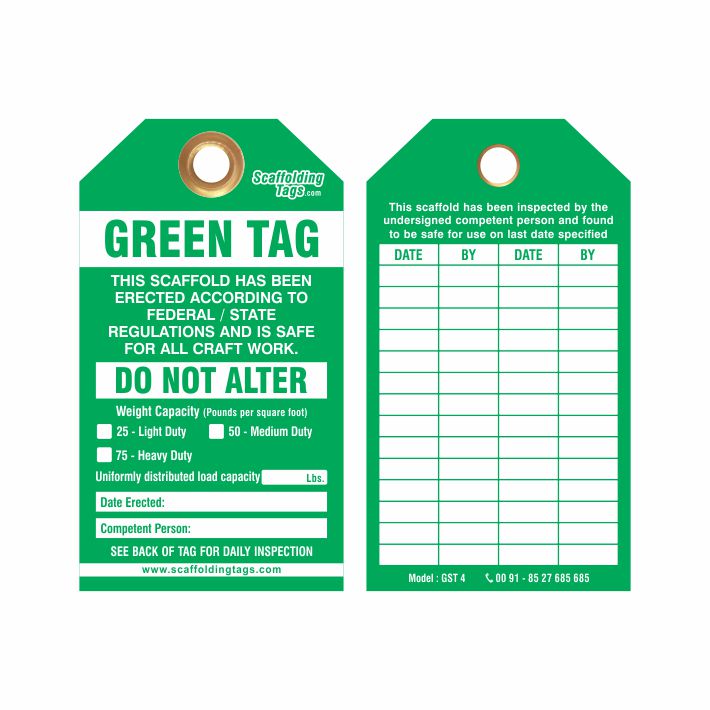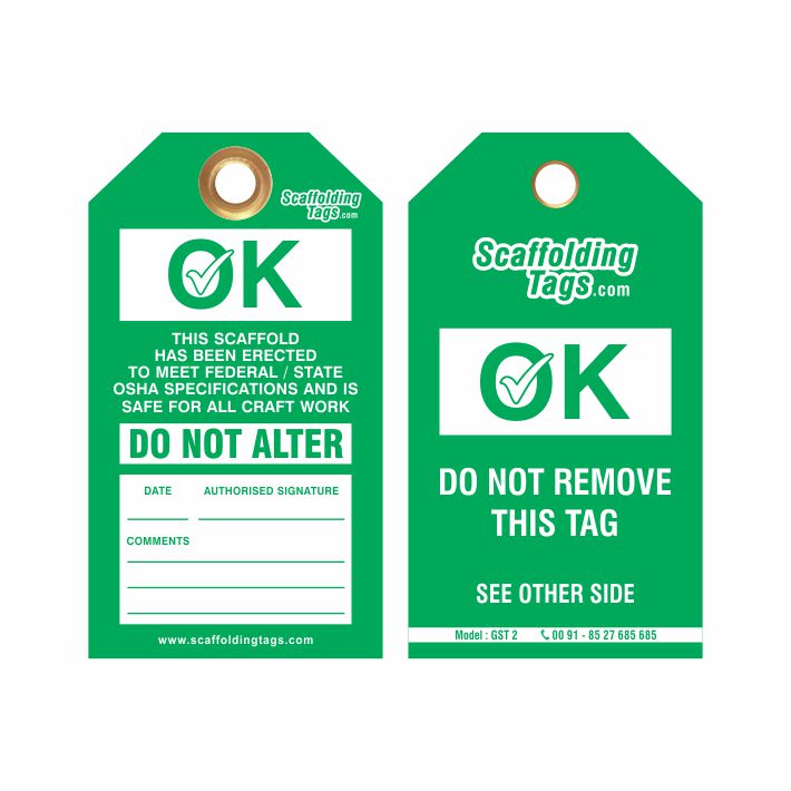 Green Scaffolding tags are designed as per the site / customer requirements and supplied with or without the customisation of company name / logo / location / language, etc. in different colours / captions as required by the regulatory authorities.