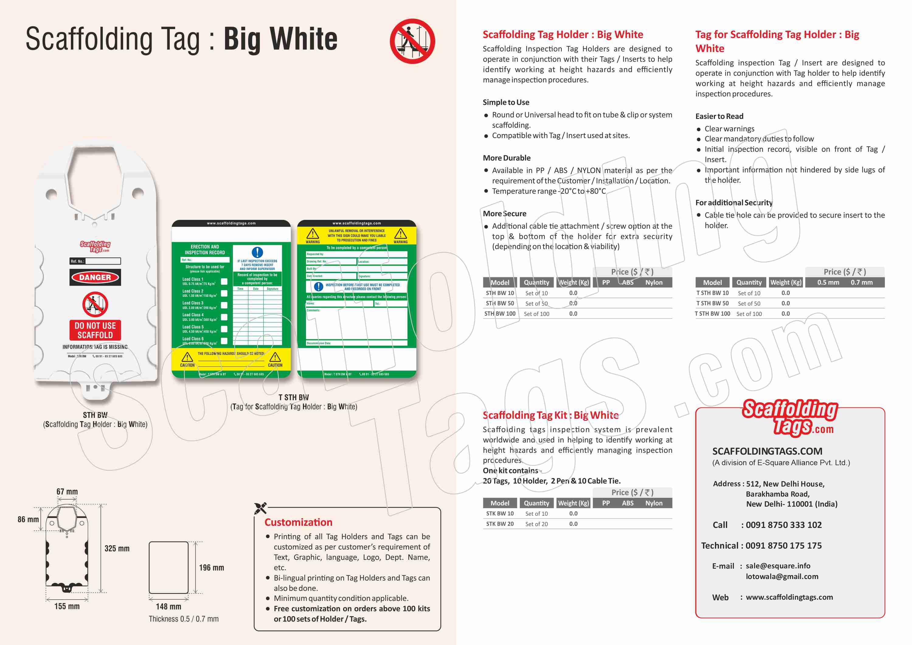 The scaffolding tag system with its unique holder and insert ensures all are aware of the current status of the structure. These tags should be placed at all strategic points from the first build stage and are to remain on the structure until dismantle thereby communicating a safety message to all.