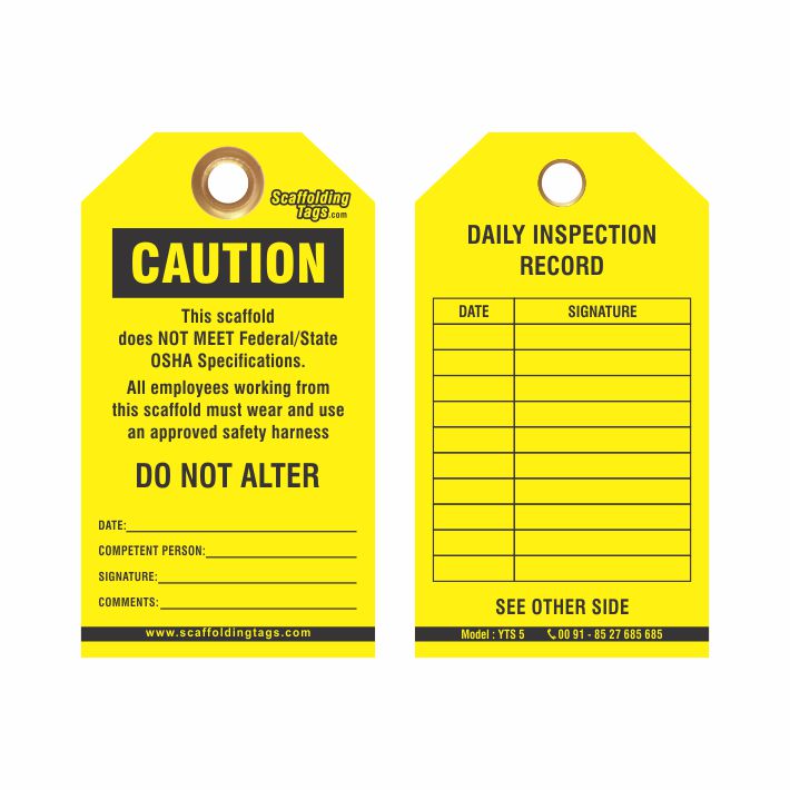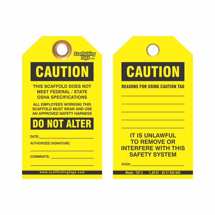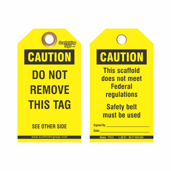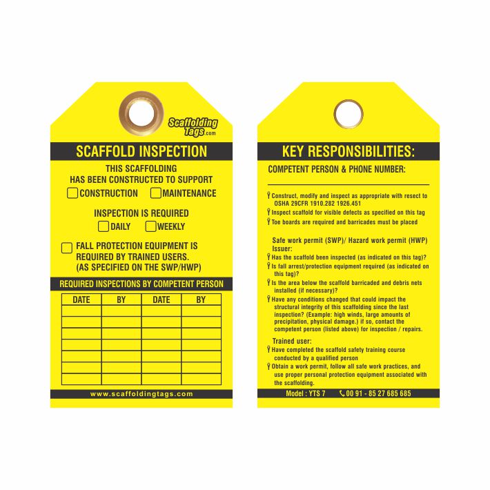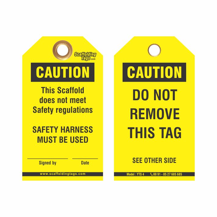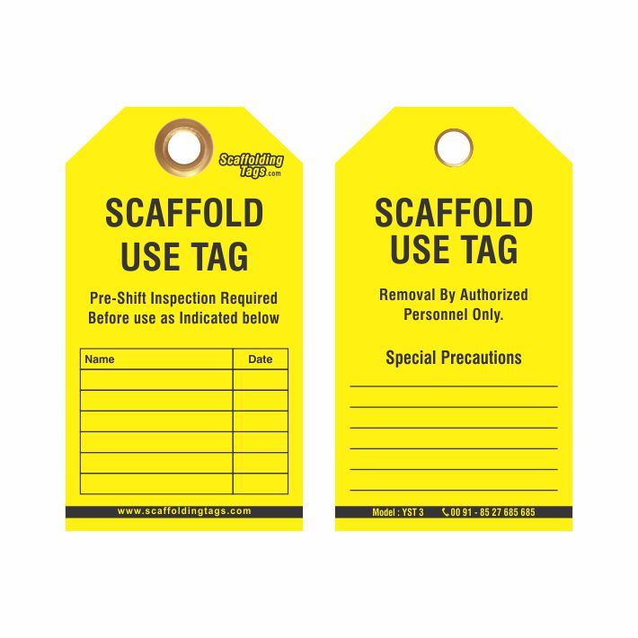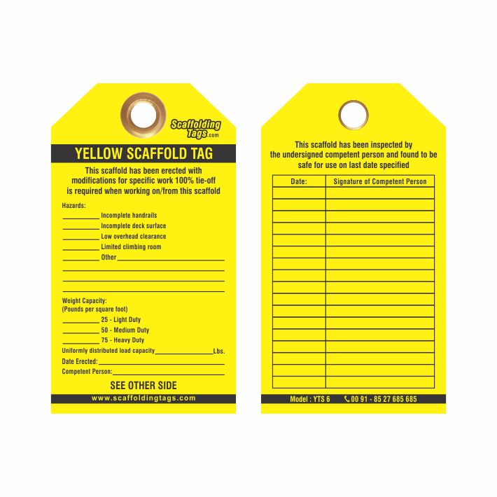 Yellow Scaffolding tags are designed as per the site / customer requirements and supplied with or without the customisation of company name / logo / location / language, etc. in different colours / captions as required by the regulatory authorities.